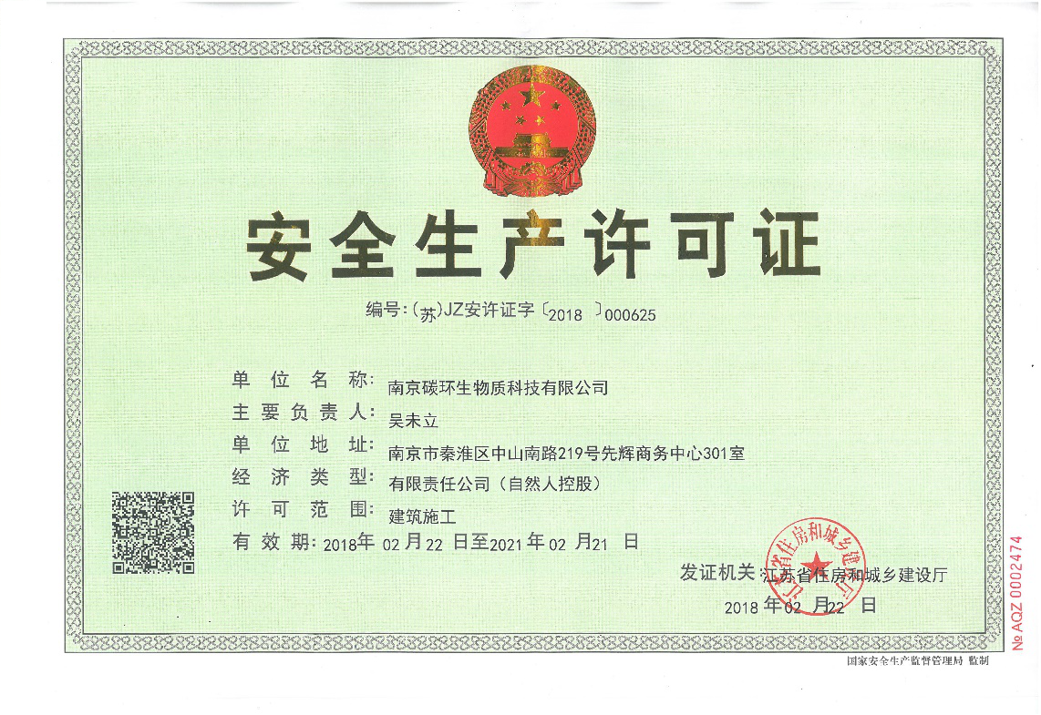 After personnel training and the improvement of the safety production system, our company is honored with the  License of safe producingissued by Chinese government, Valid from February 22, 2018 to February 21, 2021.