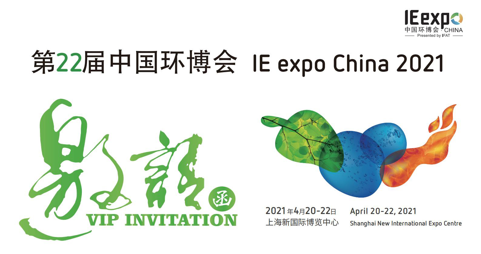 誠摯邀請(qǐng)您參加2021年4月20日-22日在上海新國際博覽中心舉行的第22屆中國環(huán)博會(huì)。