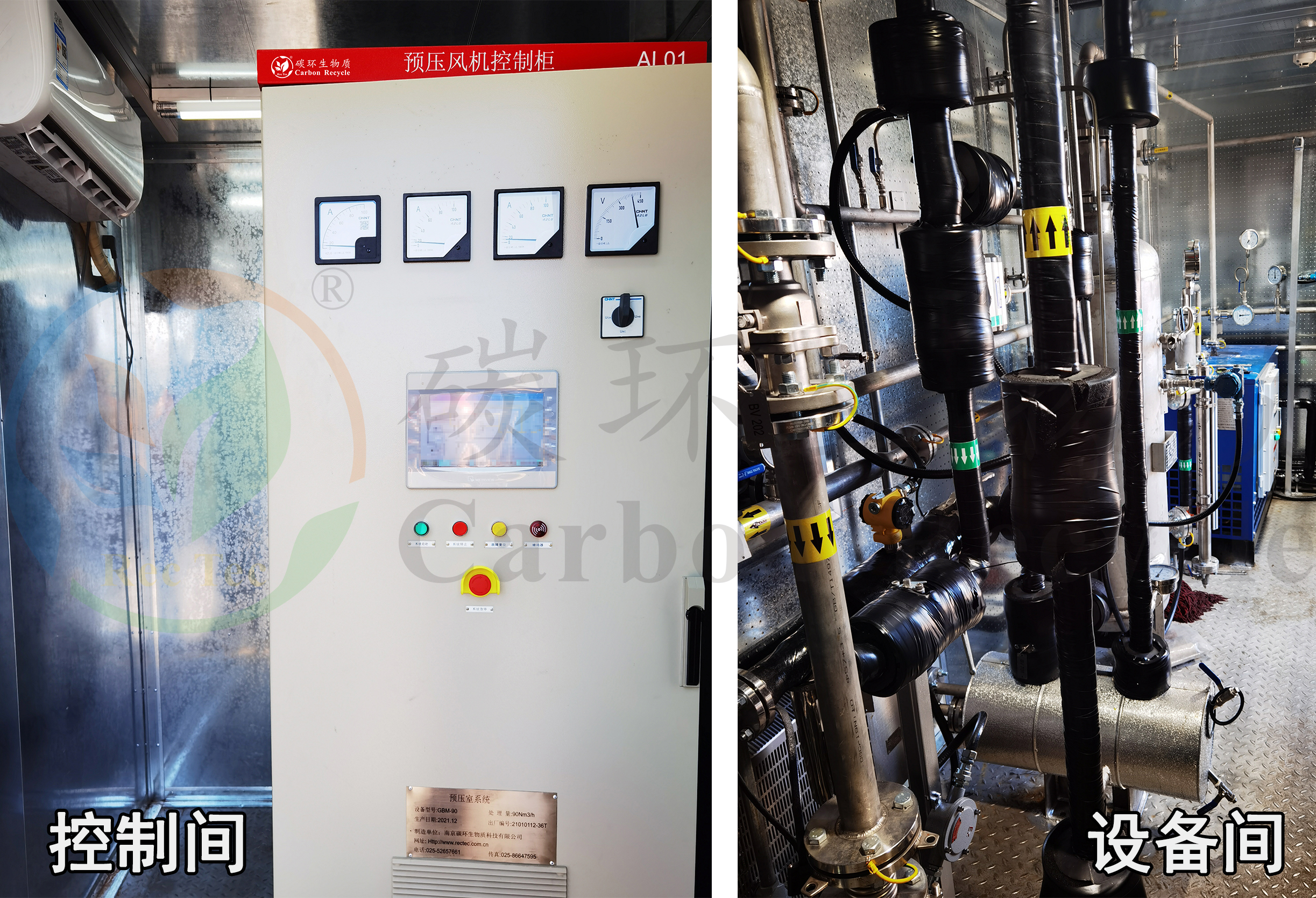 南京碳環(huán)90Nm3/h瓦斯氣預(yù)壓室系統(tǒng)為4臺顏巴赫J620燃氣發(fā)電機組提供預(yù)燃室所需的燃氣,該系統(tǒng)采用集裝箱結(jié)構(gòu)。集裝箱內(nèi)分隔為設(shè)備間和控制間,設(shè)備間除含主設(shè)備(無油壓縮機、過濾器、冷干機等)外,還配備供暖、伴熱保溫、照明、通風等設(shè)備(均為防爆產(chǎn)品),同時安裝有火警、瓦斯超限報警裝置,并將報警信號接入電廠DSC系統(tǒng)中,火警、瓦斯超限報警系統(tǒng)具備連跳功能;控制間除安裝了控制柜外,還安裝了照明、空調(diào)。整個系統(tǒng)布置緊湊、檢修通道寬敞,獲得用戶的好評。